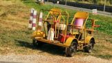 帰りに踏切周辺が大渋滞でなんだろうと思ったら、軌道自転車がゆっくりと走ってきた。