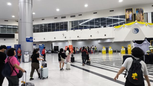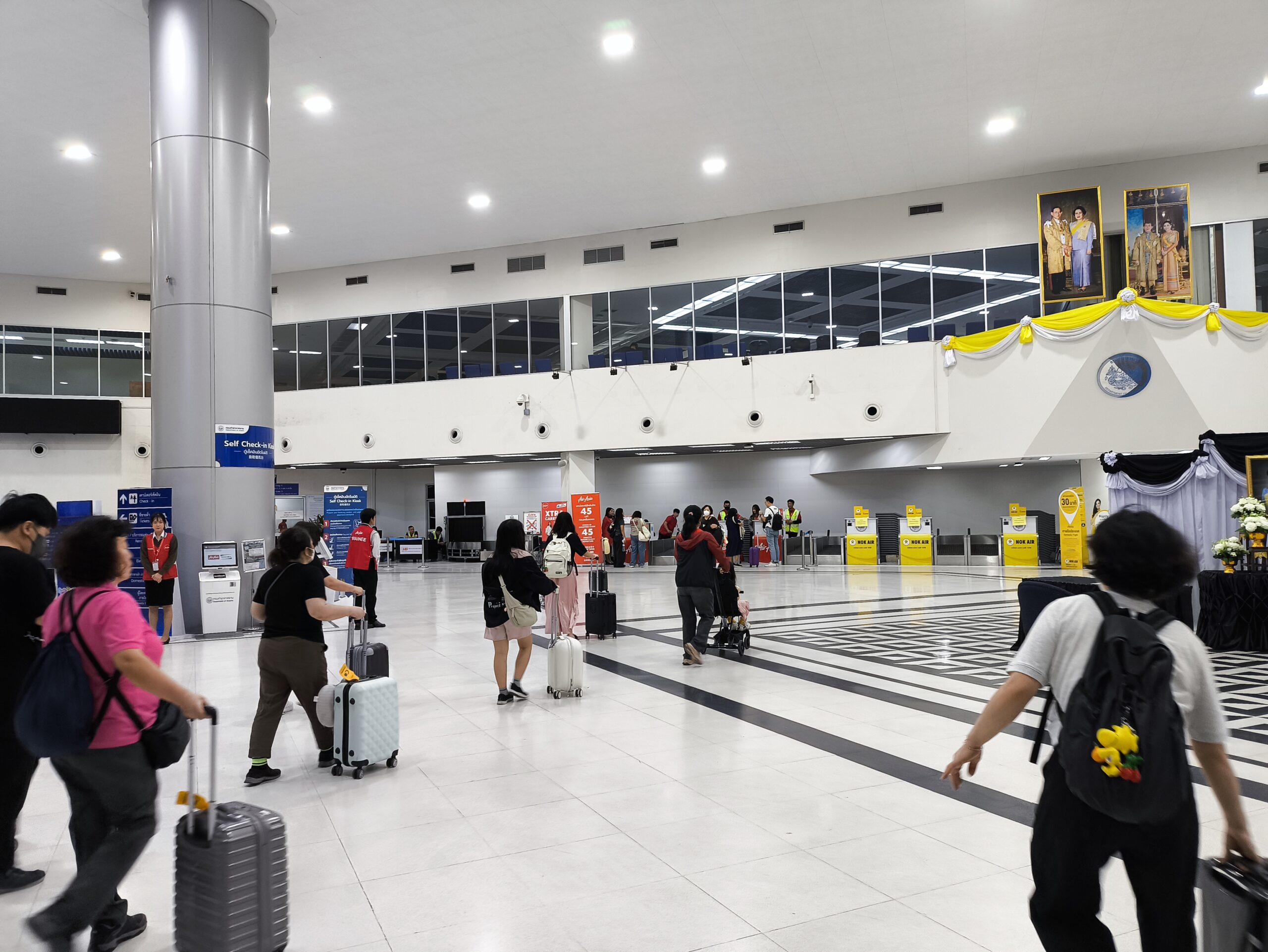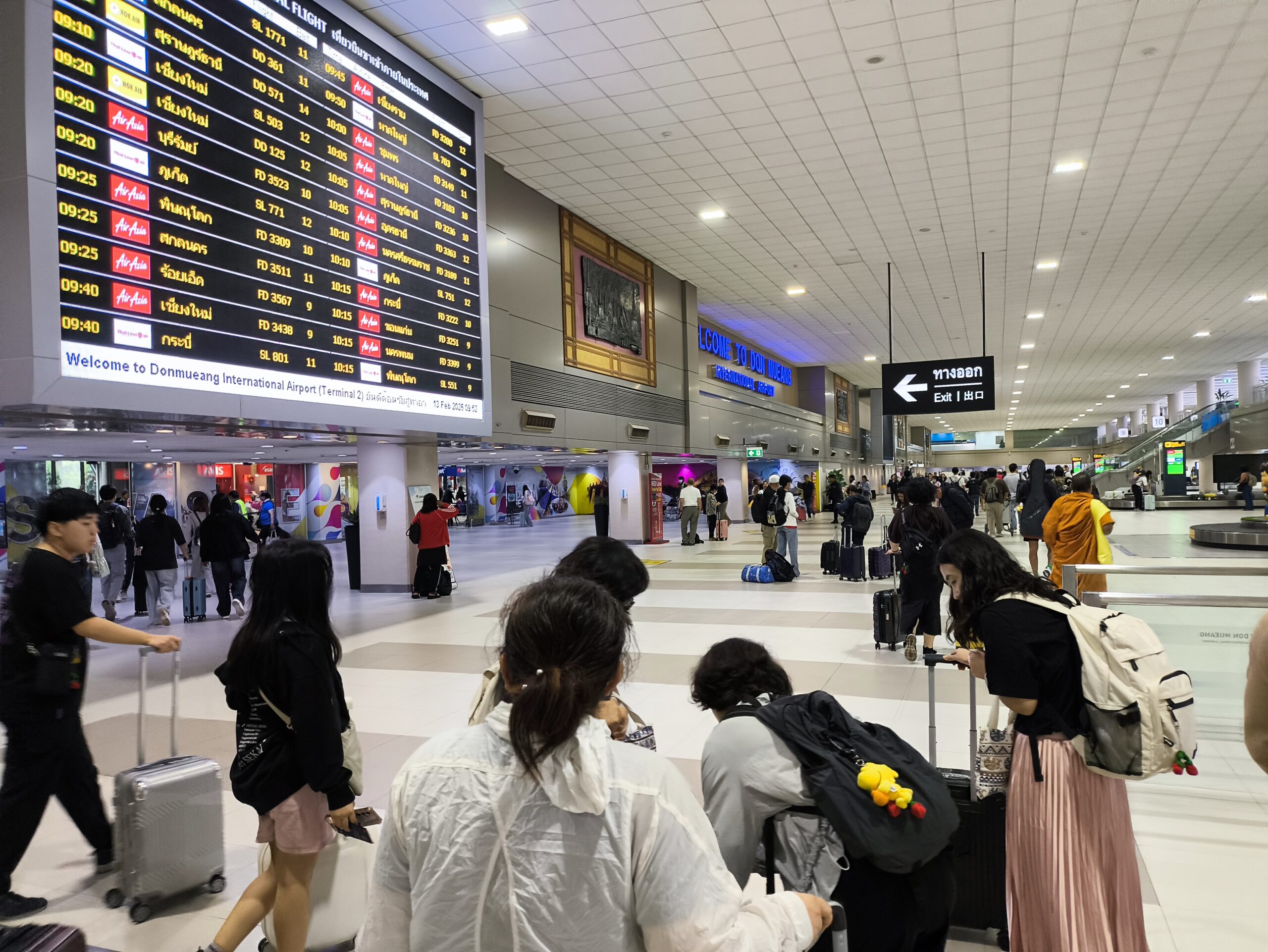 ドンムアン空港に到着し、国際線ターミナルに移動します。