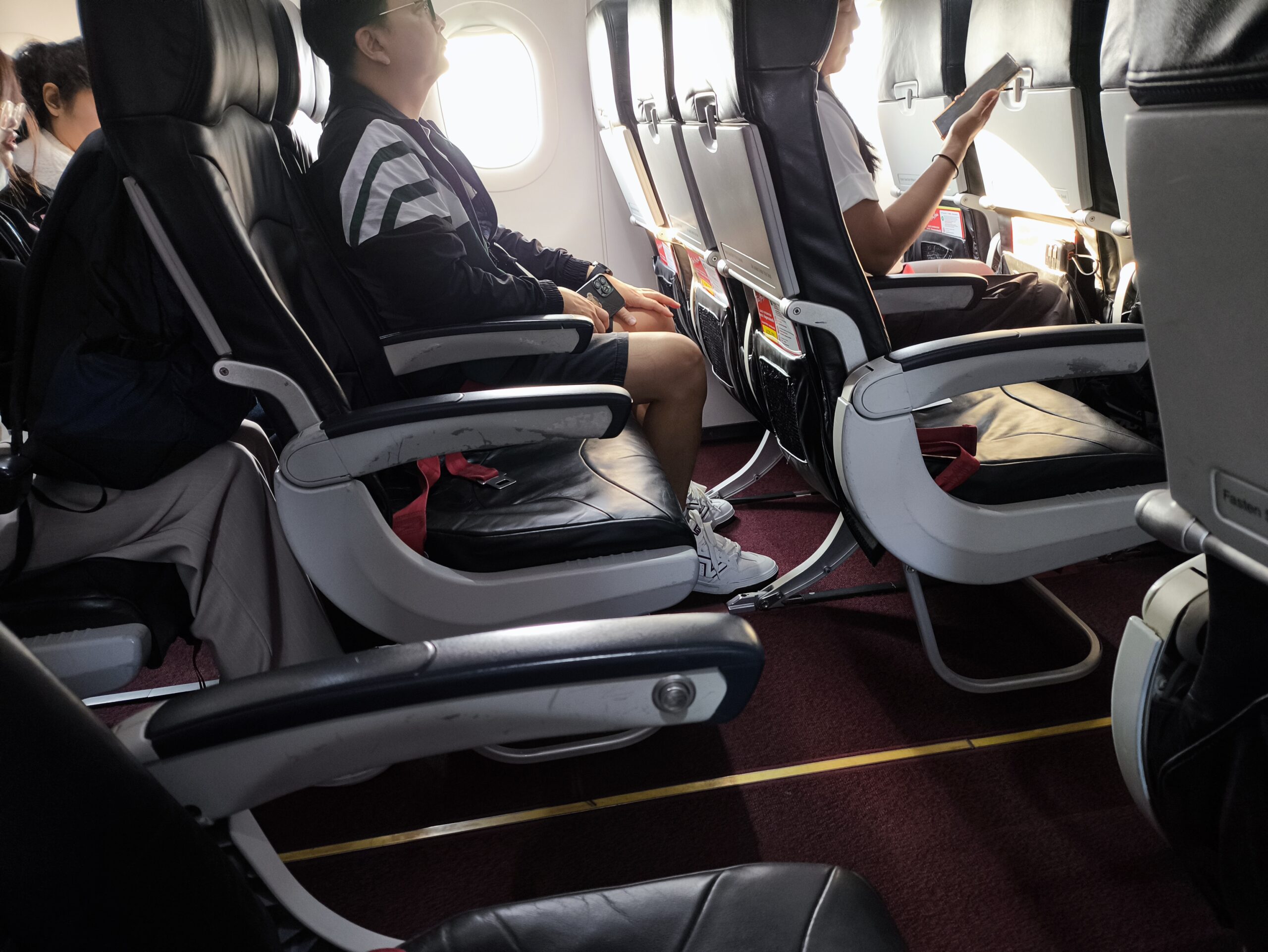 今回の機体って前回乗った時の同じ感じ。このボロいシートと映らない個人モニターとか見覚えあるね。