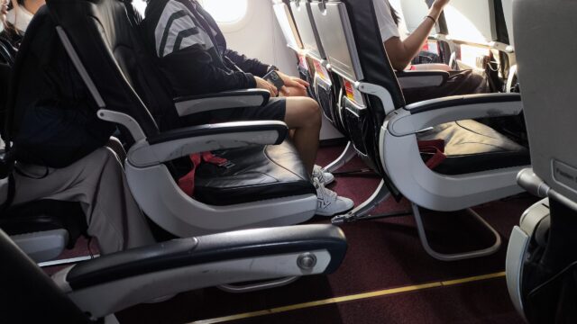 今回の機体って前回乗った時の同じ感じ。このボロいシートと映らない個人モニターとか見覚えあるね。