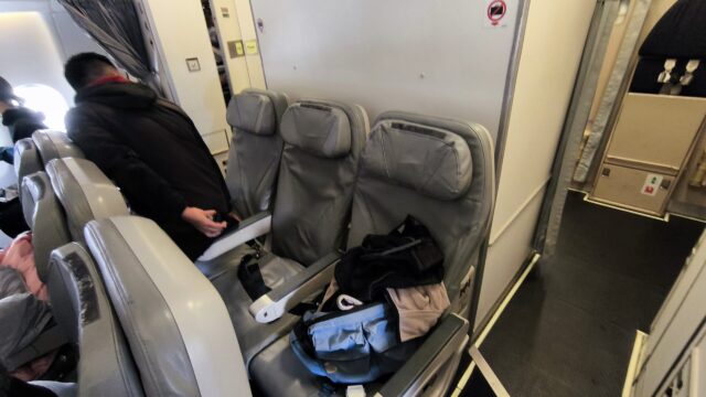 で、実際に機内に行くと俺氏の座席は最後尾の中央シートに変更されていた。