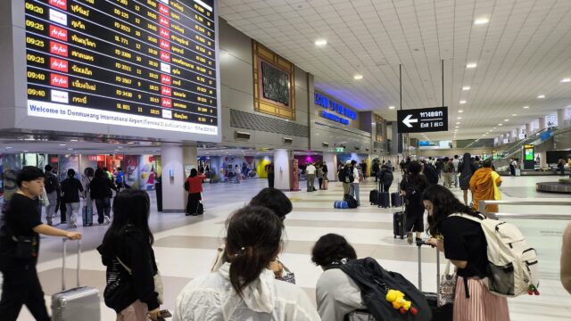 ドンムアン空港に到着し、国際線ターミナルに移動します。