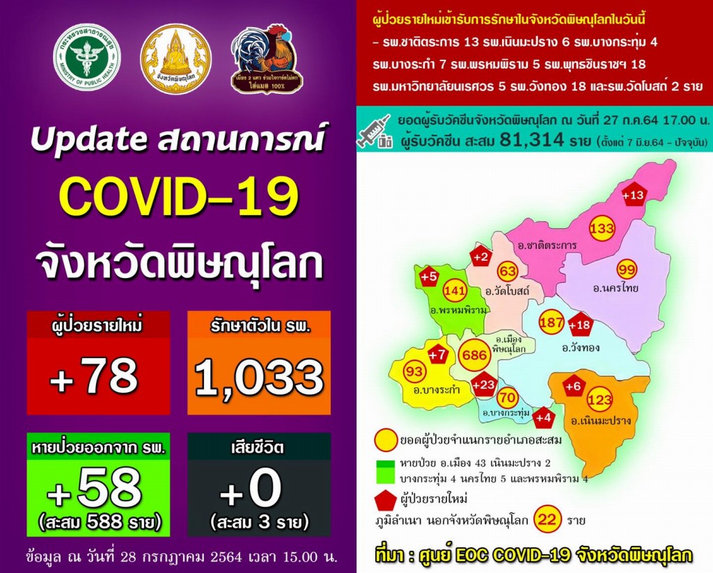 ピサヌロークは新規78人でした。内訳は「ピサヌローク在住:14人」「感染者移送:17人」「高リスク地域から移動:47人」です。