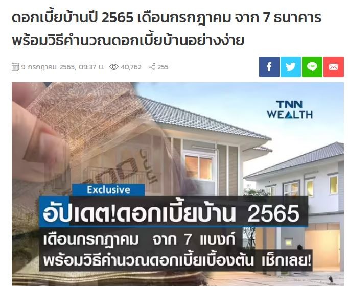 ブログに書くことがないので適当にタイの住宅ローン金利を紹介。