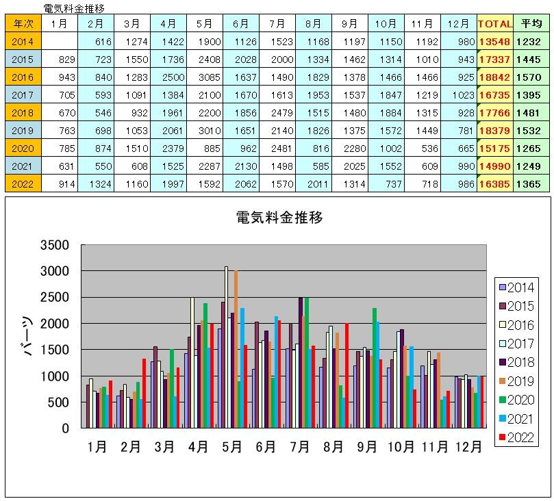 今年は割引無しで、後半の電気料金値上げも考慮すると電気使用量が減ったと思う。