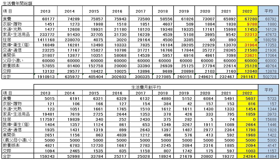 2022年の生活費まとめです。今年も生活費を丸出しですよ。