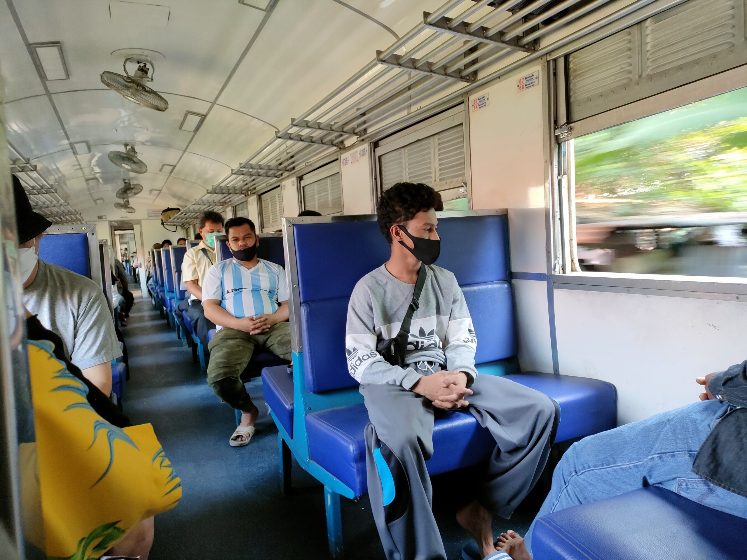 で、タイ国鉄の通勤列車に乗りホテル近くの駅まで移動。料金は本来2バーツだけど今回は無料でした。