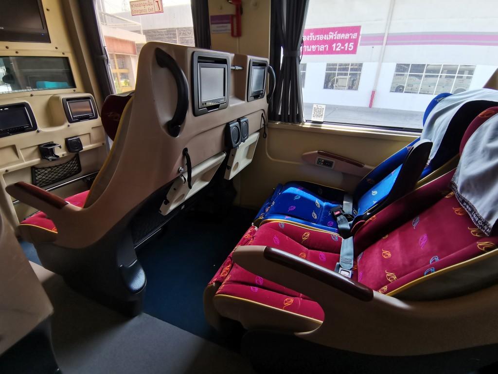 今回のバスもシートが新しくて当たりだね。この後、モーチットバスターミナルとランシットのバス乗り場に寄ってピサヌロークまで直行の予定。