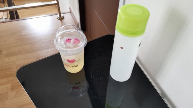 できれば小型冷蔵庫とか部屋においてあげたいけれど、今後使う予定が無いから氷はサーモースの水筒に入れて渡してる。