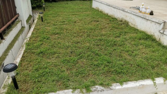 雨季の雨と強い日差しに育まれた雑草はメチャ密々でナイロン刃で刈り込むの大変です。