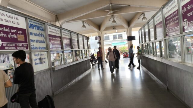 各バス会社のチケット売り場が並んでおり、タイ北部やイサーン方面のバスも結構あるね。