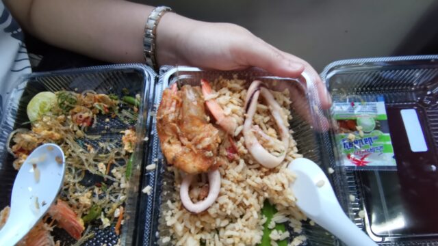 で届けて貰ったお弁当(カオパットタレー)60バーツなんだけれど正直シーフードが古くて美味しくなかった(T ^ T)