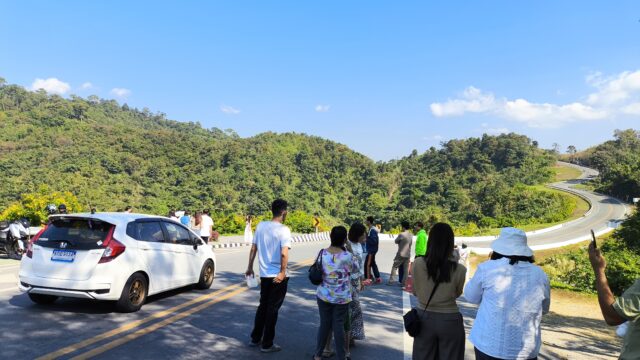 ここは道路が数字の3に見えるって事で有名だそうです。日本人的には「それだけで観光地なの?」って思いますが、山に飢えているタイ人には良いモノなんだろう。