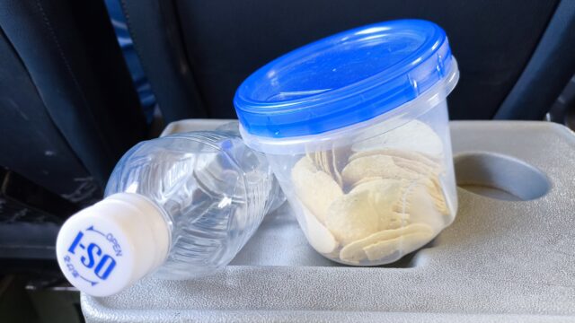 口寂しい時は日本で買った鮭とばとタイのセブンイレブンで購入したポテトチップスが大活躍だったね。ポテトチップスは包装パッケージからジップロックのスクリューロックに移し替えたら開け閉めとかの面倒が無くて大変食べやすかったです。