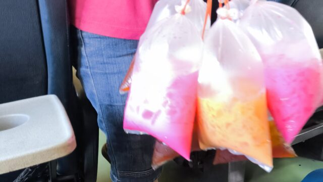 ビニール袋に入った氷入りジュースは異国情緒あるよね。ちなみにこれクッソ甘いから。