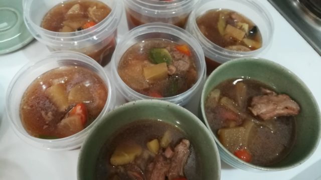 スープ多めに作ったので、8食分のオカズが出来ました。材料費が約140バーツなので1食17.5バーツくらいになります。