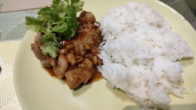 冷蔵庫に残っていたパクチーを肉の上に載せたら見た目が良くなった。なんかタイのことわざにもそんな言葉があるらしい。