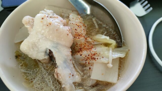 冷凍庫保管していた手羽元を使った簡単なスープ。創味シャンタンで味付け。